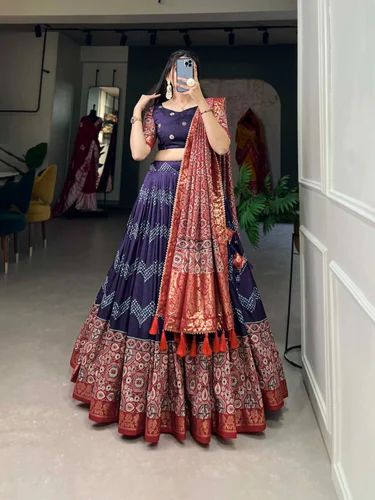 Cotton is soft, breathable, and comfortable, which makes it a great choice for events where you need to move about and have fun, like the intense dance routines during Navratri. A cotton chaniya choli for Navratri is made to keep you comfortable over the long hours of Garba or Dandiya dance. Cotton is different from other fibers because it doesn’t make you feel heavy or uncomfortable. It keeps you cool, even when the festival lights are on. It lets you move freely, which is quite important while you are dancing for hours. The cotton chaniya choli for Navratri also looks great and fits well with the festival’s joyful vibe. Many people like cotton because it is vibrant, has detailed needlework, and is light.